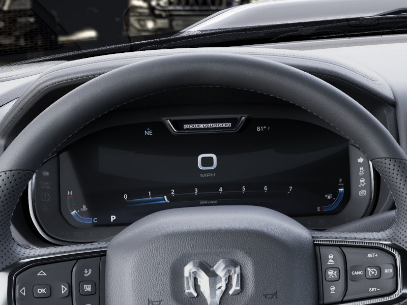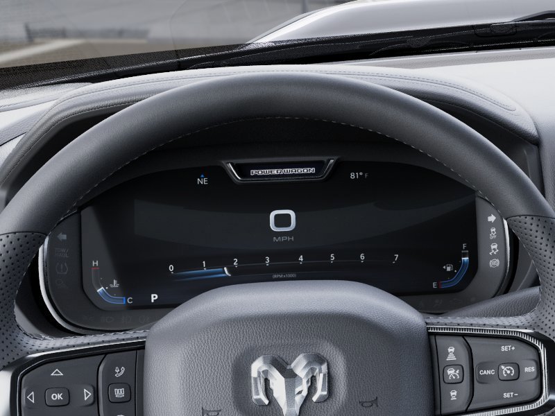 Quick Order Package 2UP Power Wagon: Power Wagon Instrument Panel Spec Plate; RAM Articulink Suspension; 17" X 8.0" Black Painted Aluminum Wheels; 17" Steel Spare Wheel; Front Disconnecting Stabilizer Bar; Instrument Cluster Theme 5 - Power Wagon; Tru-Lok Front and Rear Axles; Goodyear Brand Tires; 4.10 Axle Ratio; Black Wheel Center Hub; Raised Ride Height; LT285/70R17D OWL AT Tires. Power Wagon Level 2 Equipment Group: Google Android Auto; SiriusXM Radio Service; Power Adjustable Pedals with Memory; For Details. Visit DriveUconnect.com; For More Info. Call 800-643-2112; Front Passenger Interactive Display; Integrated Voice Command with Bluetooth; Emergency Vehicle Alert System (EVAS); Auto Power-Folding Mirrors; MOPAR Rock Rails with Step Pad; Mirror Running Lights; MOPAR Deployable Bed Step; Alexa Built-In; Apple CarPlay; Power-Adjustable Convex Aux Mirrors; Premium Overhead Console; Forward and Reverse Utility Lights; Disassociated Touchscreen Display; Leather Wrapped Shift Control; 17 Speaker Harman/kardon Premium Sound; LED Interior Lighting; LED Dome Lamp with On/off Switch; Universal Garage Door Opener; Sun Visors with Illuminated Vanity Mirrors; Center Stop Lamp with Cargo View Camera; Rain Sensitive Windshield Wipers; LED Bed Lighting; Connectivity - US/Canada; Body Color Door Handles; GPS Navigation; 4G LTE Wi-Fi Hot Spot; GPS Antenna Input; Overhead LED Lamps; Exterior Mirrors with Heating Element; Auto Dim Exterior Mirror; SiriusXM with 360L; Global Telematics Box Module; Leather Wrapped Grab Handle; Connected Travel and Traffic Services; Black Exterior Mirrors; Off-Road Info Pages; Selectable Tire Fill Alert; Trailer T