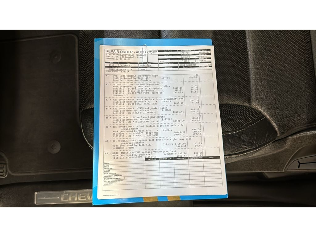 RST 6.2L Performance Edition: Unique RST Emblem; 2-Speed Active Electronic Autotrac Transfer Case; 3.23 Rear Axle Ratio; 170 Amp Alternator; 6.2L V8 EcoTec3 Engine; Electronic 10-Speed Automatic Transmission with Overdrive; Integrated Trailer Brake Controller; High-Capacity Air Cleaner. RST Edition: Black Roof Rails; Body-Color Headlamp Accents; Body-Color Door Handles; Unique RST Emblem; P285/45R22 AS BW Tires; Wheel Locks (set of 4); Black Nameplate Badging; Front and Rear Black Bow Ties; 22 X 9 Gloss Black Aluminum Wheels; Black Beltline Moldings; Unique Gloss Black Sport Grille; Black Mirror Caps. Preferred Equipment Group 1LZ: Memory Settings; Heated Leather Wrapped Steering Wheel; Perforated Leather-Appointed Seat Trim; Remote Vehicle Start; 3rd Row 60/40 Power Fold Split-Bench; Front and Rear Park Assist; Floor Console with Storage Area; 6-Way Power Front Passenger Seat Adjuster; AM/FM Stereo with Navigation; 7. 500 lbs (3. 402 Kgs) GVWR; Enhanced Driver Alert Package; Rear Cross Traffic Alert; Fog Lamps; Driver Inboard and Front Passenger Airbags; Wireless Charging; Universal Home Remote; Color-Keyed Carpeting Floor Covering; Heated 2nd Row Outboard Seats; 12-Volt Auxiliary Power Outlet (5); Hands-Free Power Liftgate; 1st and 2nd Row Color-Keyed Carpeted Floor Mats; Heated and Ventilated Front Reclining Bucket Seats; Power Folding and Adjustable Heated Outside Mirrors; Lane Change Alert with Side Blind Zone Alert; Electronic Cruise Control with Set and Resume Speed; HD Radio; SiriusXM Radio; Single-Speed Active Autotrac Transfer Case; Black Assist Steps; Power Tilt and Telescoping Steering Column; Roof-Mounted Luggage Rack Side Rails; Passive Entry System; Magnetic Ride Control Suspension Package; Auto-Dimming Inside Rearview Mirror; Power-Adjustable Accelerator and Brake Pedals; Push Button Keyless Start; Power Release 2nd Row Bucket Seats; 4-Wheel Antilock Disc Brakes. Power Tilt-Sliding Sunroof with Express-Open/close. Enhanced Driver Information Center. 1st and 2nd Rows All-Weather Floor Liner. Molded Splash Guards. All-Weather Rear Cargo Mat. Wheel Locks (set of 4). **Equipment listed is based on original vehicle build and subject to change. Please confirm the accuracy of the included equipment by calling the dealer prior to purchase.**