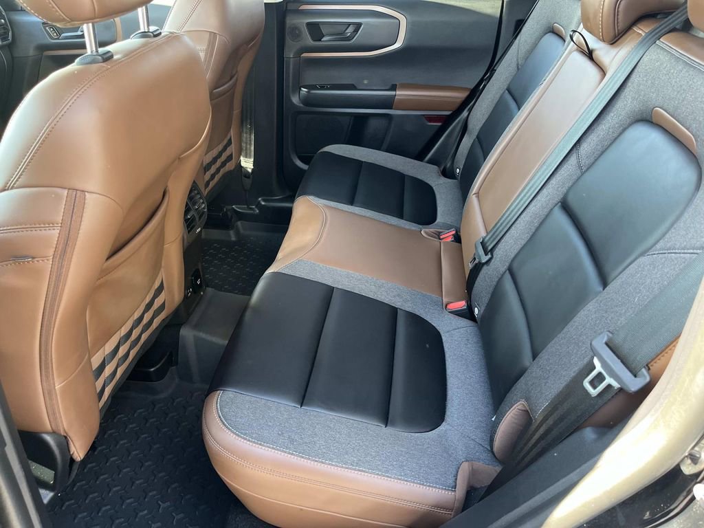 Good News! This certified CARFAX 1-owner vehicle has only had one owner before you. Protect the vehicle from unwanted accidents with a cutting edge backup camera system. This Ford Bronco Sport warns of approaching vehicles with Cross-Traffic Alert. The state of the art park assist system will guide you easily into any spot. This vehicle offers Automatic Climate Control for personalized comfort. The Ford Bronco Sport is pure luxury with a heated steering wheel. Bluetooth technology is built into the Ford Bronco Sport, keeping your hands on the steering wheel and your focus on the road. The installed navigation system will keep you on the right path. The leather seats in this model are a must for buyers looking for comfort, durability, and style. This mid-size suv is equipped with the latest generation of XM/Sirius Radio. The Ford Bronco Sport has a clean CARFAX vehicle history report. Never get into a cold vehicle again with the remote start feature on this vehicle.This unit has four wheel drive capabilities. Anti-lock brakes are standard on this model. This Ford Bronco Sport has auto-adjust speed for safe following. Light weight alloy wheels on this Ford Bronco Sport are the perfect compliment to a stylish body. This Ford Bronco Sport offers Android Auto for seamless smartphone integration. The vehicle offers Apple CarPlay for seamless connectivity. This Ford Bronco Sport offers Automatic Climate Control for personalized comfort. This Ford Bronco Sport has an automatic transmission. See what's behind you with the back up camera on this vehicle. This Ford Bronco Sport is painted with a sleek and sophisticated black color. Good News! This certified CARFAX 1-owner vehicle has only had one owner before you. This unit has a clean CARFAX vehicle history report. Set the temperature exactly where you are most comfortable in this vehicle. The fan speed and temperature will automatically adjust to maintain your preferred zone climate. The Ford Bronco Sport's Cross-Traffic Alert: Safeguarding you from unexpected traffic when reversing. Easily set your speed in it with a state of the art cruise control system. Increase or decrease velocity with the touch of a button. The Electronic Stability Control will keep you on your intended path. This mid-size suv has a 3 Cyl, 1.5L high output engine. Know you and your passengers are protected with the front and rear side curtain airbags in the vehicle. This mid-size suv has fog lights for all weather conditions. This unit is equipped with front air bags. Stay safe with additional front side curtain airbags. Enjoy the tried and true gasoline engine in this Ford Bronco Sport. This Ford Bronco Sport features a hands-free Bluetooth phone system. Enjoy the heated seats in the Ford Bronco Sport you will never buy a vehicle without them. Everyone loves the comfort of having a warm seat on those cold winter days. This unit is pure luxury with a heated steering wheel. With the keyless entry system on this 2023 Ford Bronco Sport you can pop the trunk without dropping your bags from the store. The leather seats are soft and supportive on the Ford Bronco Sport. With the adjustable lumbar support in this vehicle your back will love you. This mid-sized SUV is perfect for your next adventure. The installed navigation system will keep you on the right path. This mid-size suv comes with power adjustable seat to get your seat just right for you. Power seats are a must! The state of the art park assist system will guide you easily into any spot. Never get into a cold vehicle again with the remote start feature on this mid-size suv. This 2023 Ford Bronco Sport has satellite radio capabilities. This Ford Bronco Sport is built for driving comfort with a telescoping wheel. The traction control system on the vehicle instantly senses tire slippage and executes minute power adjustments to maintain traction at all speeds. with XM/Sirus Satellite Radio you are no longer restricted by poor quality local radio stations while driving this vehicle. Anywhere on the planet, you will have hundreds of digital stations to choose from.