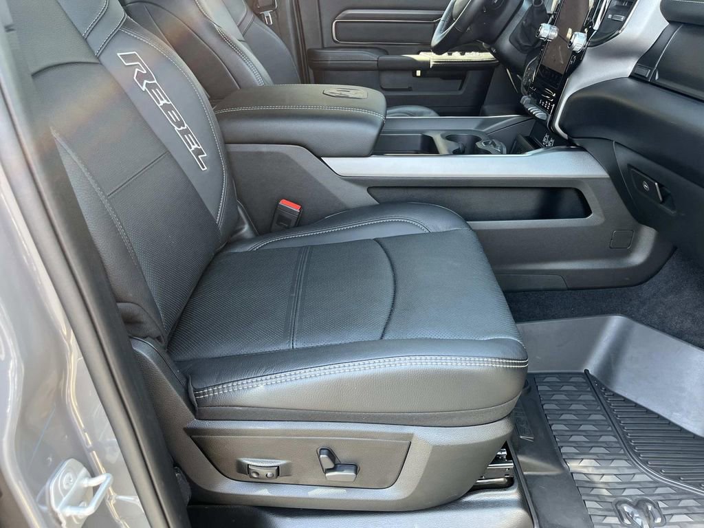 Quick Order Package 2UR Rebel. Rebel Level 1 Equipment Group: Rain Sensitive Windshield Wipers; Power Adjustable Pedals with Memory; Body Color Door Handles; Auto Power-Folding Mirrors; Overhead LED Lamps; Exterior Mirrors with Heating Element; Auto Dim Exterior Mirror; MOPAR Rock Rails with Step Pad; Mirror Running Lights; Black Exterior Mirrors; Power-Adjustable Convex Aux Mirrors; Premium Overhead Console; Forward and Reverse Utility Lights; 9 Alpine Speakers with Subwoofer; Power Heated Fold Telescopic Mirrors with Memory; Exterior Mirrors with Supplemental Signals; Sport Performance Hood; Exterior Mirrors Courtesy Lamps; Front Door Locks 2-Door Passive Entry; LED Interior Lighting; Auto High Beam Headlamp Control; LED Dome Lamp with On/off Switch; Universal Garage Door Opener; Exterior Mirrors with Memory; Power Adjust Mirrors; Power Telescoping Mirrors; Leather Trimmed Bucket Seats; MOPAR Front and Rear Rubber Floor Mats; Auto Dim Exterior Passenger Mirror; Sun Visors with Illuminated Vanity Mirrors; Auto Adjust in Reverse Exterior Mirrors. MOPAR Rock Rails with Step Pad. 5th Wheel/gooseneck Towing Prep Group. MOPAR Front and Rear Rubber Floor Mats. 4.10 Axle Ratio. **Equipment listed is based on original vehicle build and subject to change. Please confirm the accuracy of the included equipment by calling the dealer prior to purchase.**
