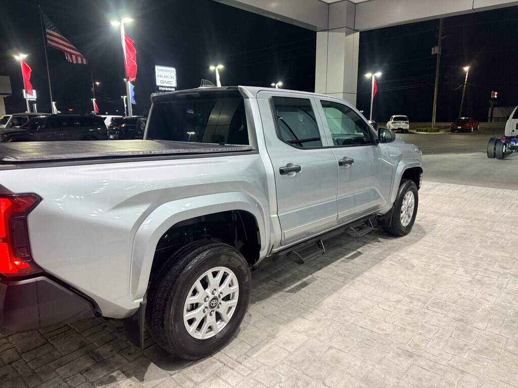 Apple CarPlay: Seamless smartphone integration for this 2024 Toyota Tacoma - stay connected and entertained on the go! Protect the Toyota Tacoma from unwanted accidents with a cutting edge backup camera system. The Toyota Tacoma offers Android Auto for seamless smartphone integration. Good News! This certified CARFAX 1-owner vehicle has only had one owner before you. This 2024 Toyota Tacoma 's Cross-Traffic Alert: Safeguarding you from unexpected traffic when reversing. The rear parking assist technology on this small pickup will put you at ease when reversing. The system alerts you as you get closer to an obstruction. Our dealership has already run the CARFAX report and it is clean. A clean CARFAX is a great asset for resale value in the future. This model's blind spot monitor enhances safety. The Toyota Tacoma features a hands-free Bluetooth phone system. The vehicle shines with an exquisite metallic silver exterior finish. When you encounter slick or muddy roads, you can engage the four wheel drive on this unit and drive with confidence.